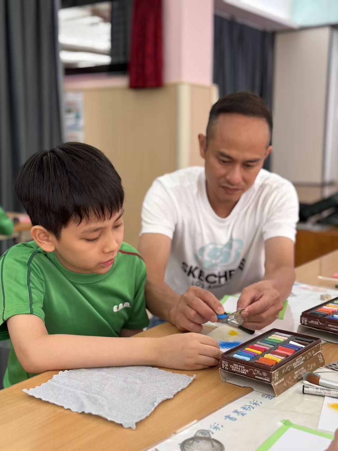 為進一步加強家校合作,營造溫馨有愛的親子氛圍,我校聯合心聆家庭教育及輔導中心舉辦“中秋月亮粉彩工作坊”。