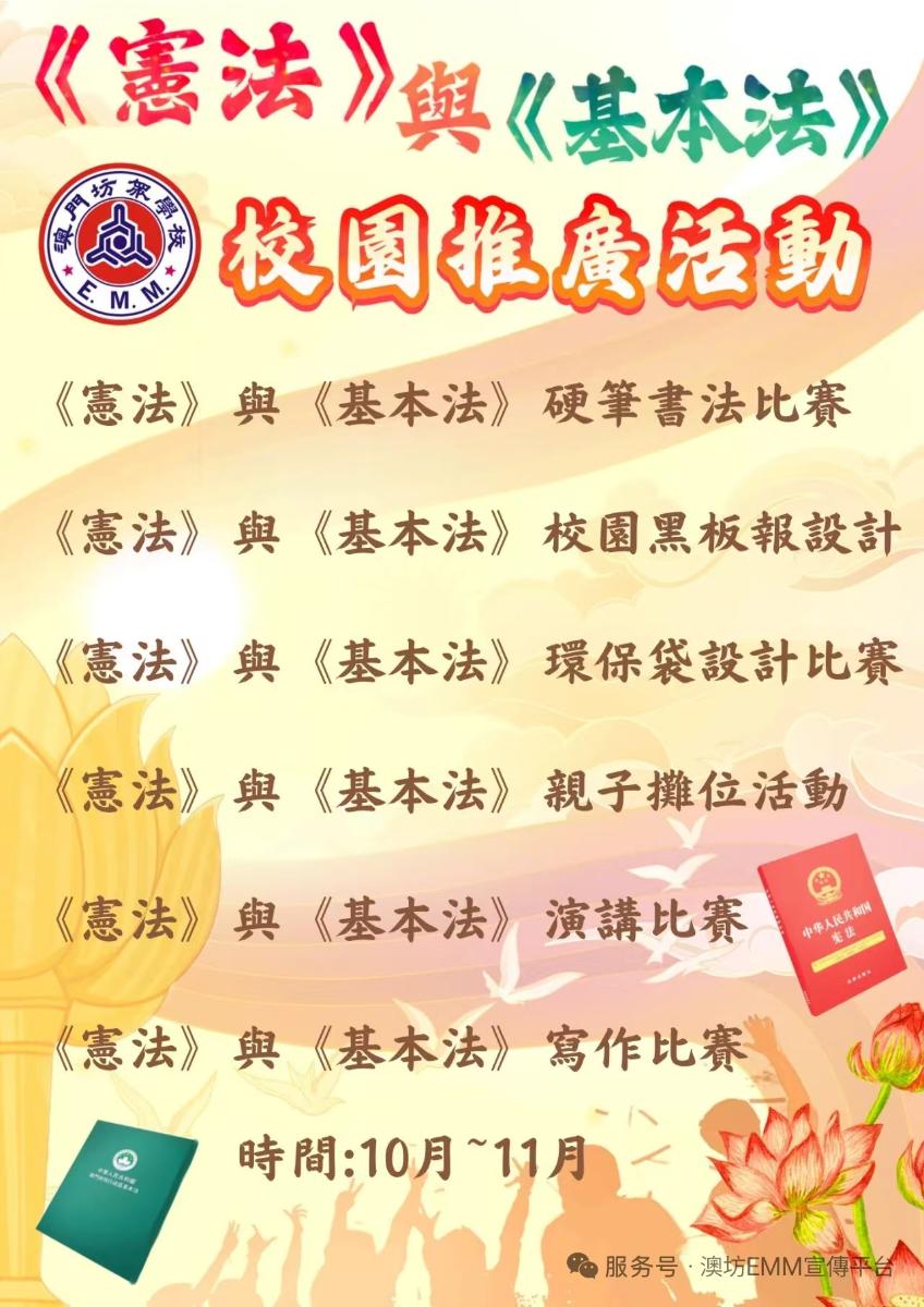 爲了拓寬學生的學習視野,豐富學生的校園生活,加深學生對《憲法》與《基本法》的認識,我校於2025年10月至11月,