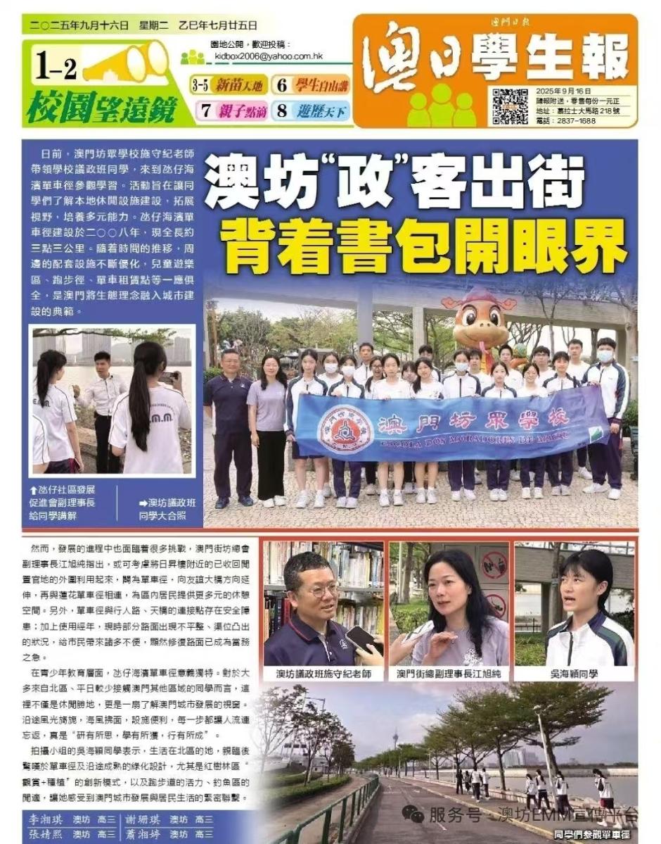 學習。活動旨在讓同學們了解本地休閒設施建設,拓展視野,培養多元能力。氹仔海濱單車徑建設